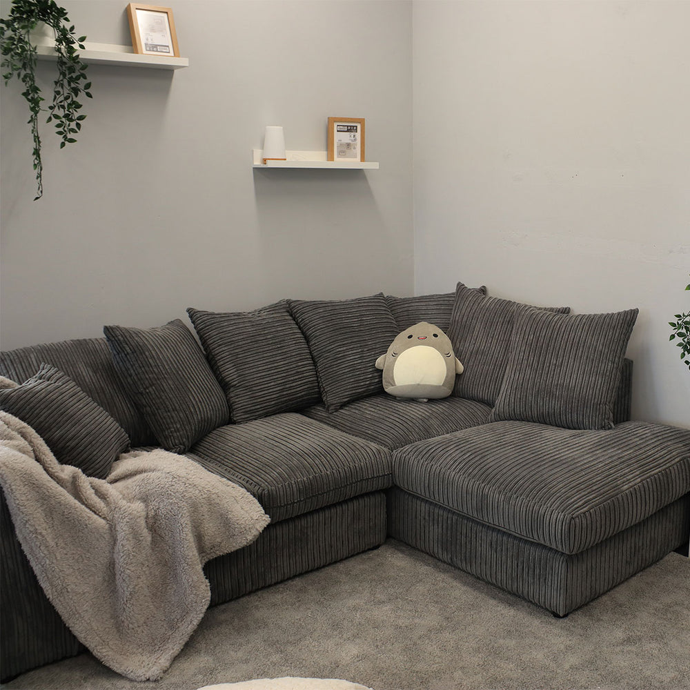 Aariya's Grey Right Hand Facing Corner Sofa is backordered and will ship as soon as it is back in stock.