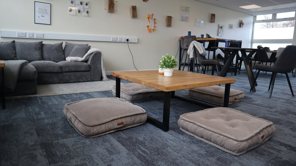 Our absolute favourite! Classrooms should allow for flexible seating and so many children benefit from sitting (or lying) on the floor. It allows them to concentrate, ground and self-regulate. Our square floor table is a rustic, chunky table with plenty of space for children to spread out and do their work, set up a play activity, draw or chat.