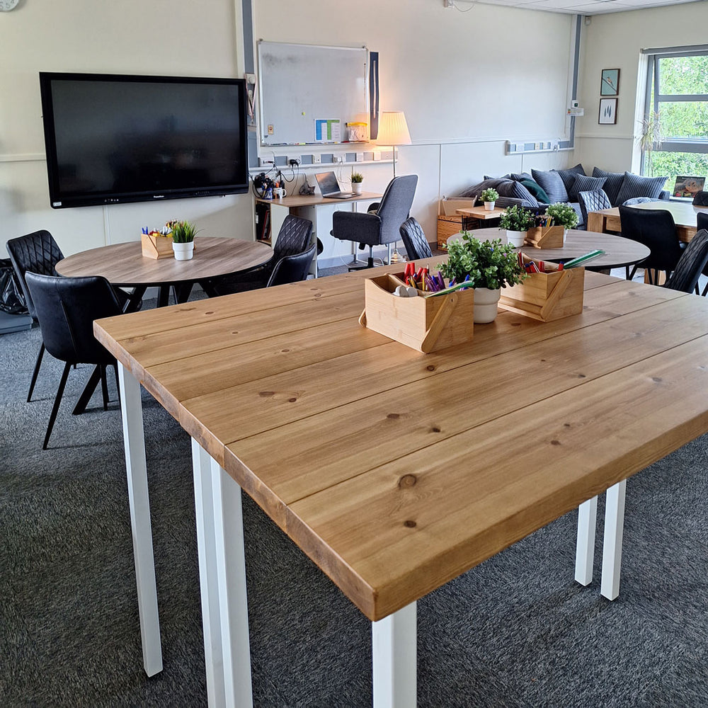 Our Standard High Table seats two and is our top pick! These allow for flexible seating options, even if you can't change the whole room. High tables are a firm favourite with children and are a great way to offer flexible seating for those children who might need some space. This table is designed with children who might have had a tricky morning or break time in mind, and we find they are far more likely to engage and participate when they can sit on the reflective high table. These tables are so popular that we offer size-marked options for ages ranging from 6 years - adult.